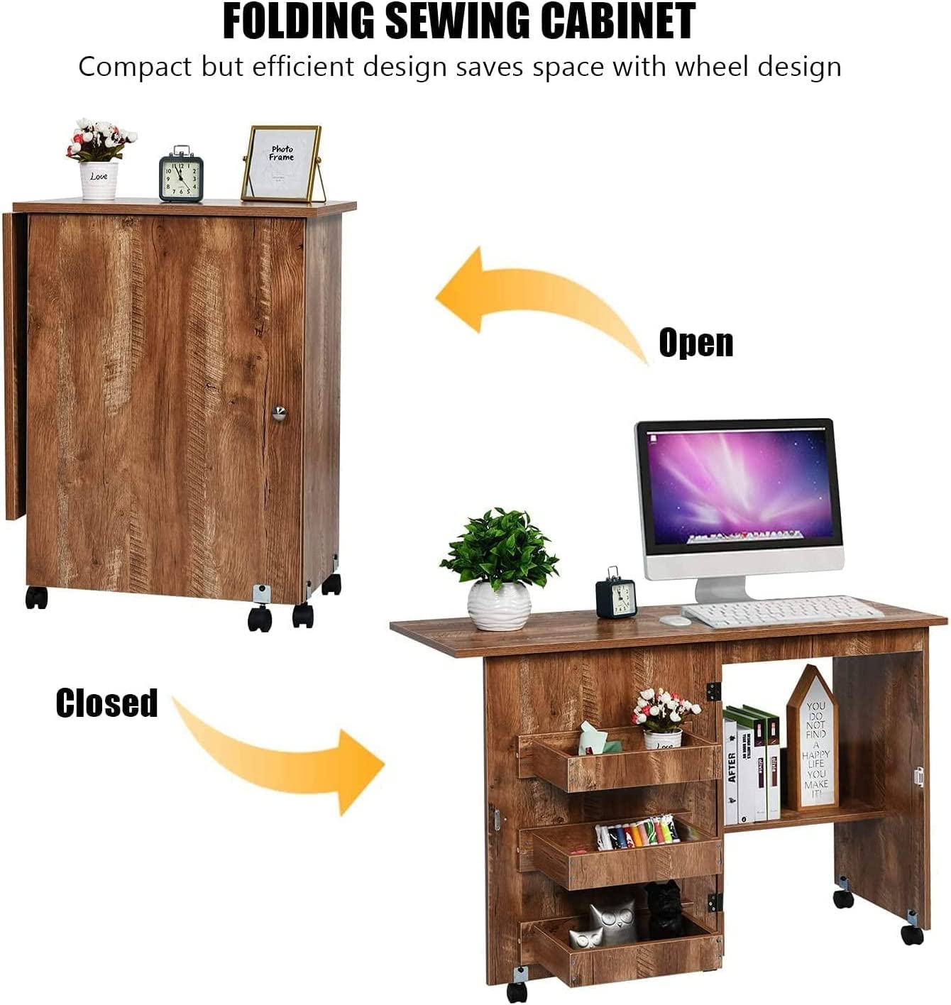Usinso Folding Sewing Table Multifunctional Sewing Machine Cart Table Sewing Craft Cabinet Table With Storage Shelves Portable Rolling Sewing Desk Computer Desk With Lockable Casters Brown Arts Crafts Sewing Amazon Com
